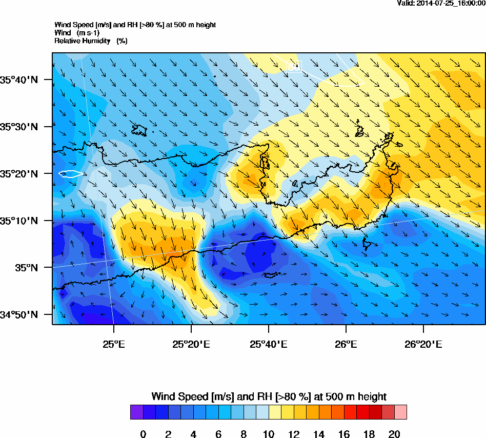 Graph 2: arw067.png - Wind Speed [m/s] and RH [>80%] at 500 m height