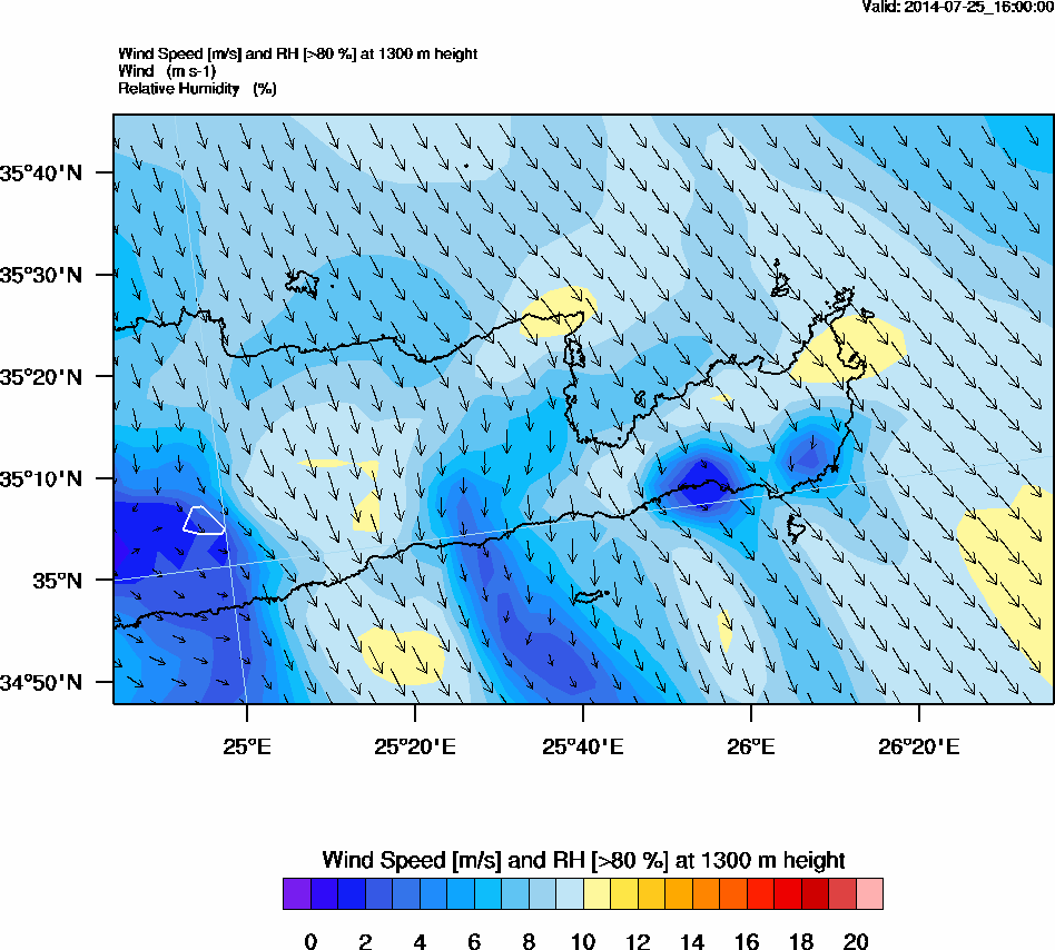 Graph 4: arw069.png - Wind Speed [m/s] and RH [>80%] at 1300 m height