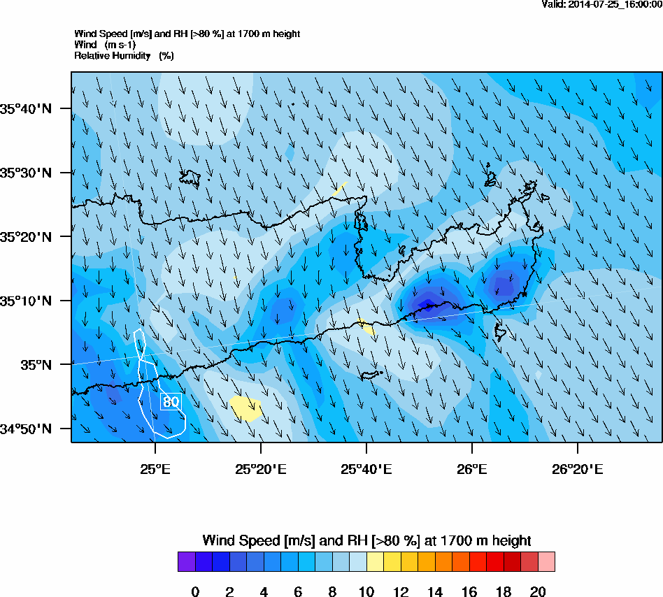 Graph 5: arw070.png - Wind Speed [m/s] and RH [>80%] at 1700 m height
