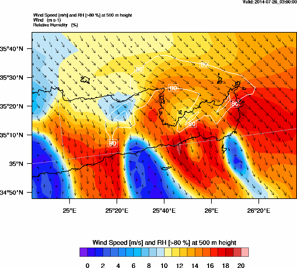 Graph 2: arw002.png - Wind Speed [m/s] and RH [>80%] at 500 m height