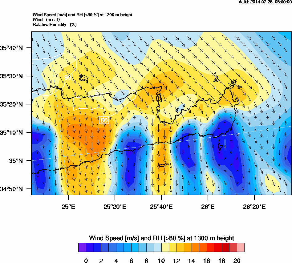 Graph 4: arw019.png - Wind Speed [m/s] and RH [>80%] at 1300 m height