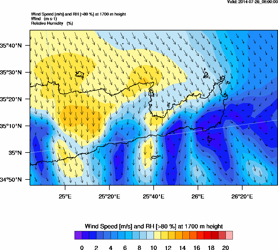 Graph 5: arw020.png - Wind Speed [m/s] and RH [>80%] at 1700 m height