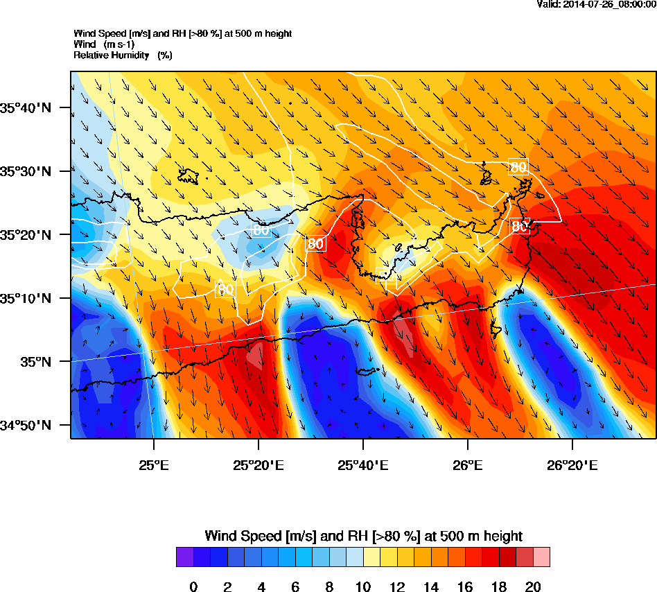 Graph 2: arw027.png - Wind Speed [m/s] and RH [>80%] at 500 m height