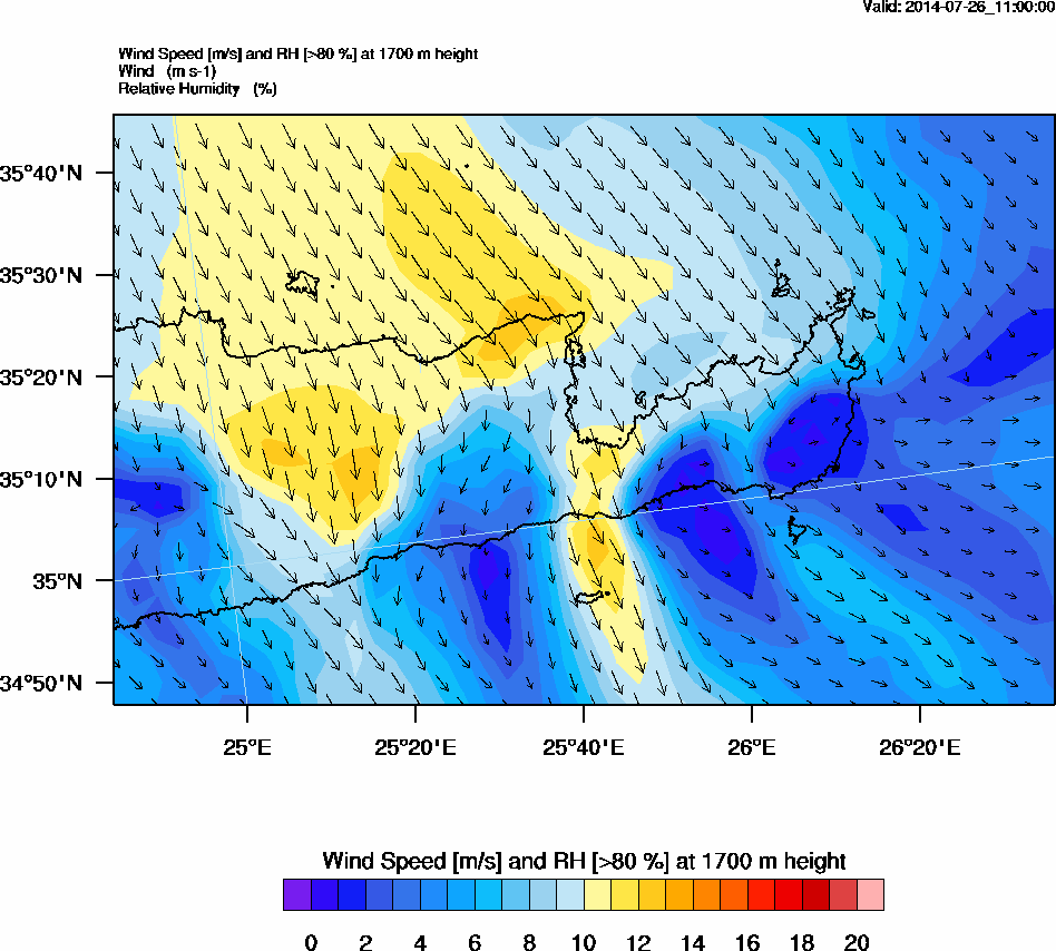 Graph 5: arw045.png - Wind Speed [m/s] and RH [>80%] at 1700 m height