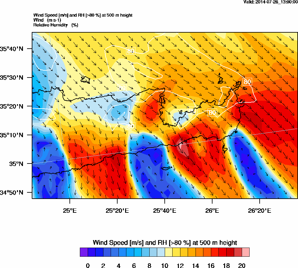 Graph 2: arw052.png - Wind Speed [m/s] and RH [>80%] at 500 m height