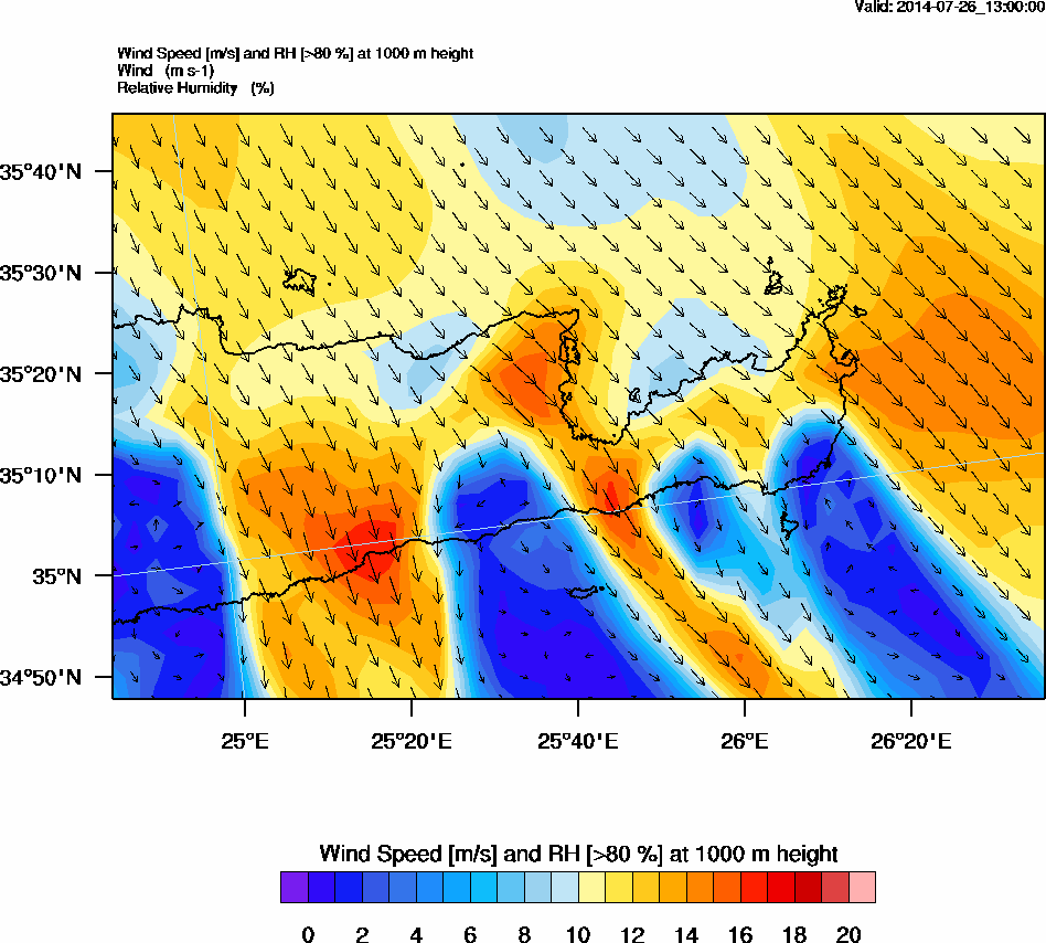 Graph 3: arw053.png - Wind Speed [m/s] and RH [>80%] at 1000 m height