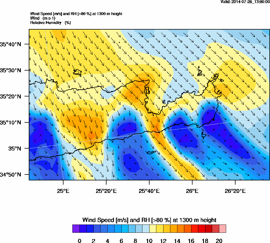 Graph 4: arw054.png - Wind Speed [m/s] and RH [>80%] at 1300 m height