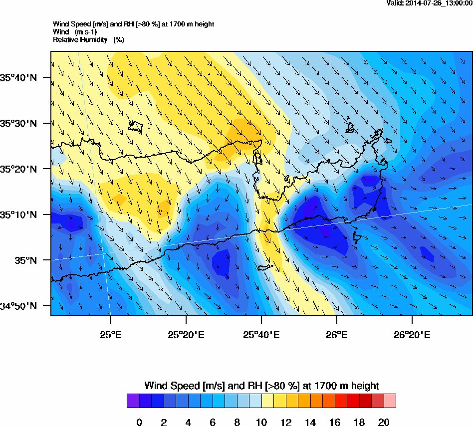 Graph 5: arw055.png - Wind Speed [m/s] and RH [>80%] at 1700 m height