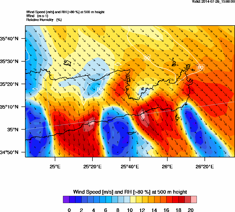 Graph 2: arw062.png - Wind Speed [m/s] and RH [>80%] at 500 m height