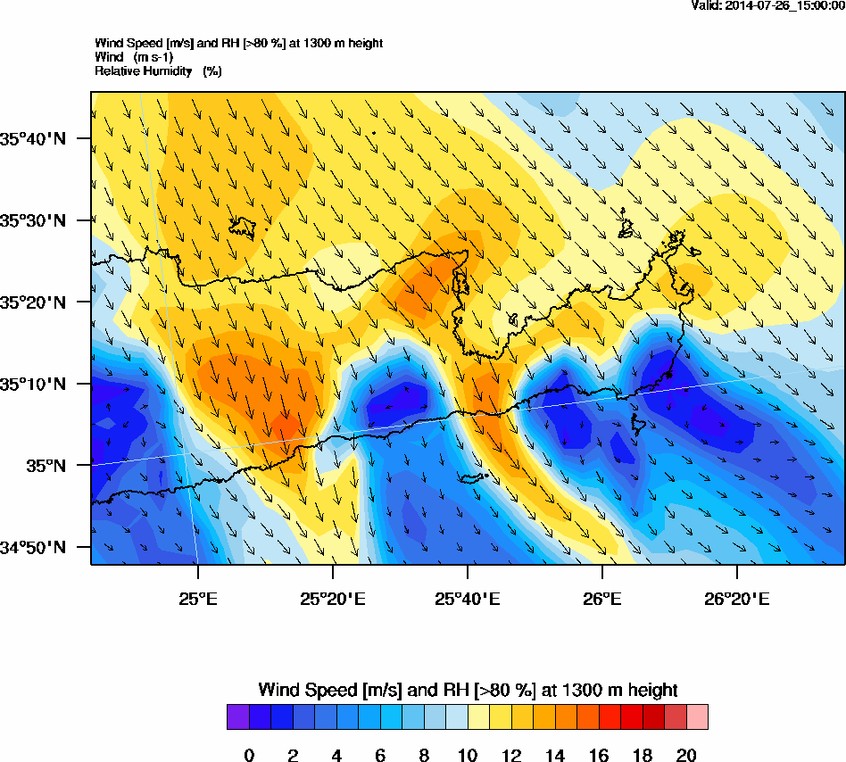 Graph 4: arw064.png - Wind Speed [m/s] and RH [>80%] at 1300 m height