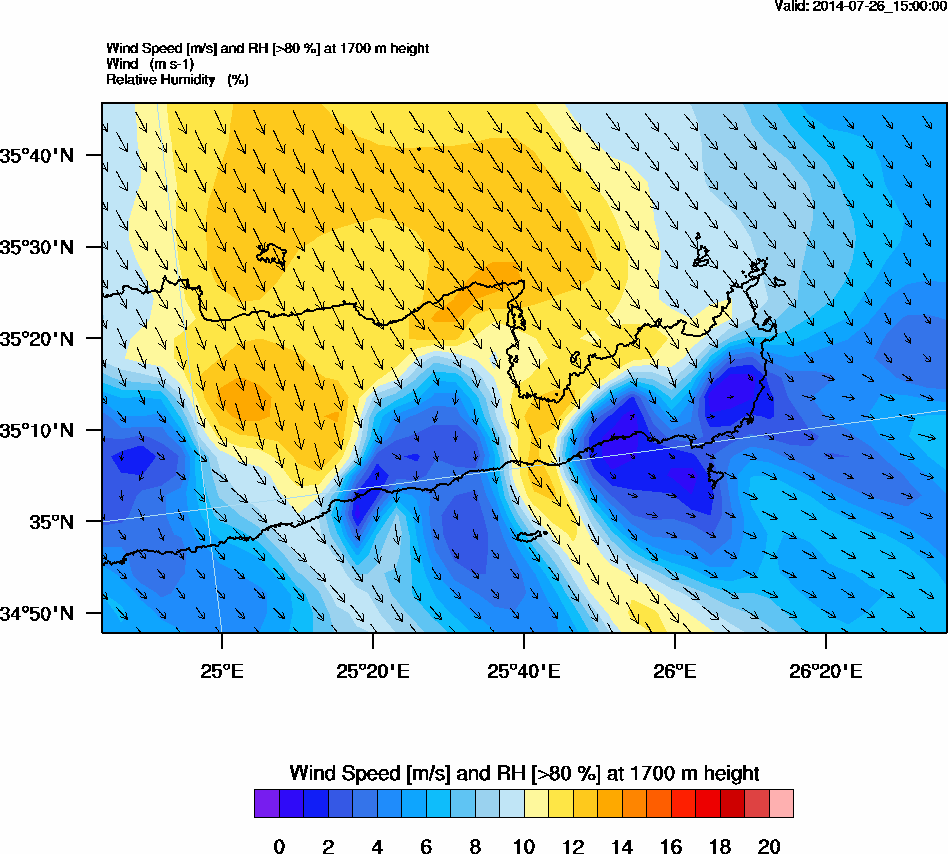 Graph 5: arw065.png - Wind Speed [m/s] and RH [>80%] at 1700 m height