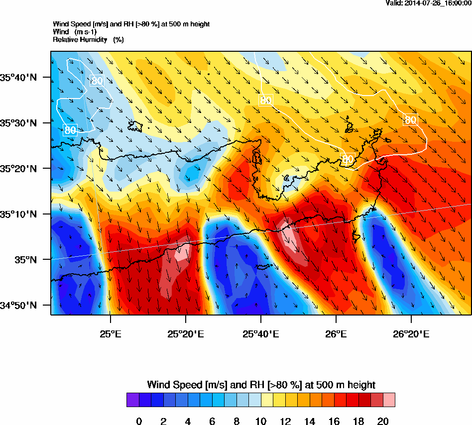Graph 2: arw067.png - Wind Speed [m/s] and RH [>80%] at 500 m height
