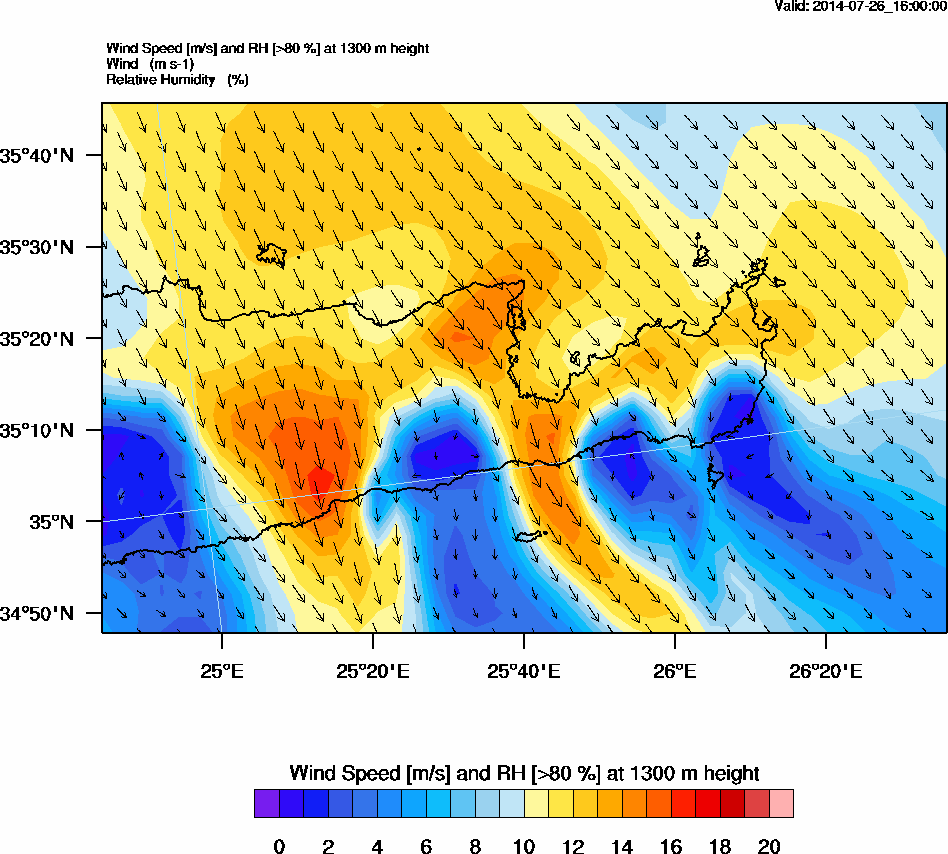 Graph 4: arw069.png - Wind Speed [m/s] and RH [>80%] at 1300 m height