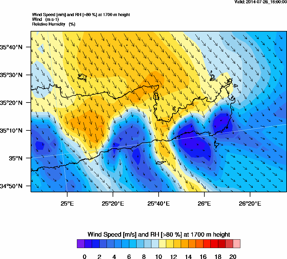 Graph 5: arw070.png - Wind Speed [m/s] and RH [>80%] at 1700 m height