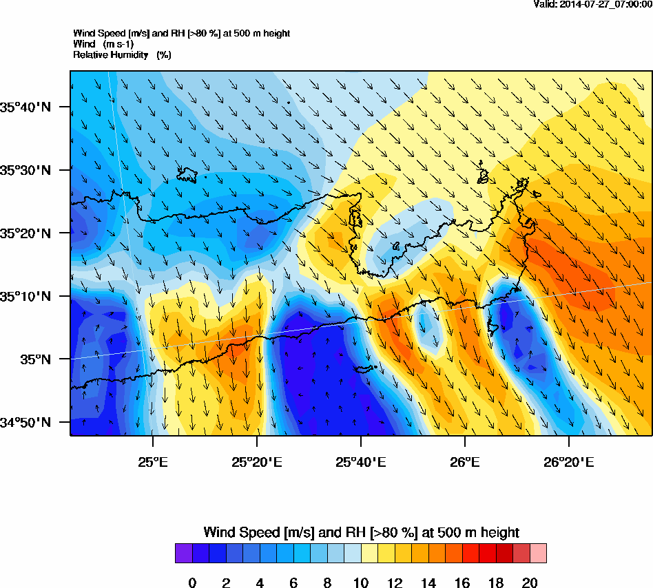 Graph 2: arw022.png - Wind Speed [m/s] and RH [>80%] at 500 m height