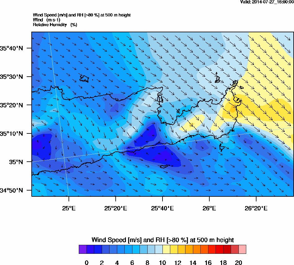Graph 2: arw067.png - Wind Speed [m/s] and RH [>80%] at 500 m height