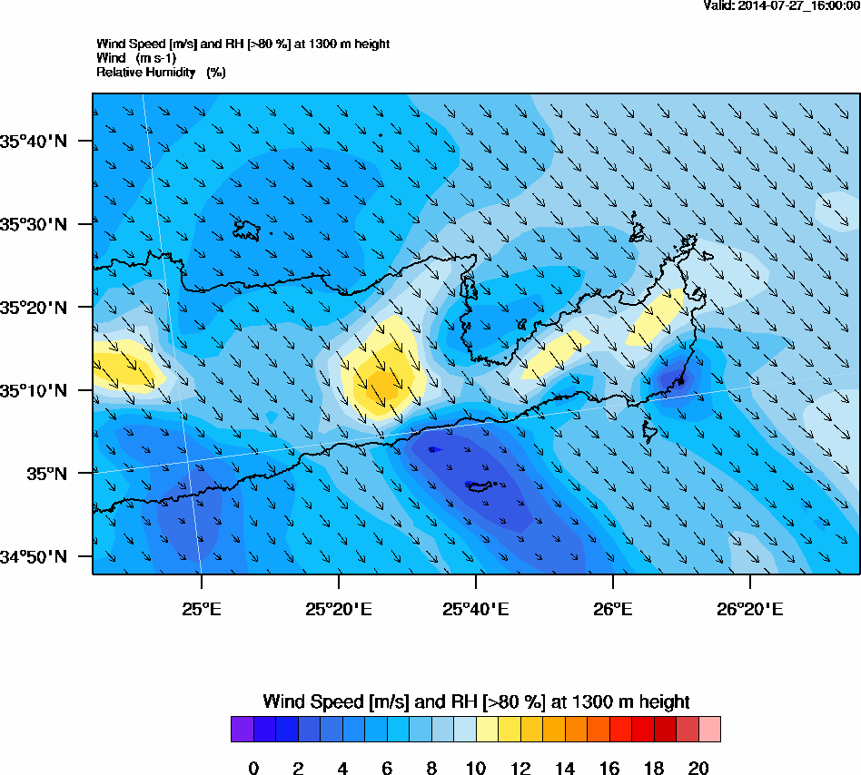 Graph 4: arw069.png - Wind Speed [m/s] and RH [>80%] at 1300 m height