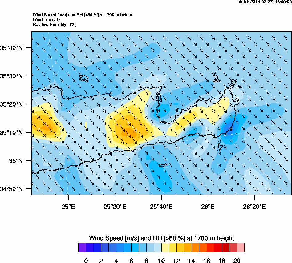Graph 5: arw070.png - Wind Speed [m/s] and RH [>80%] at 1700 m height