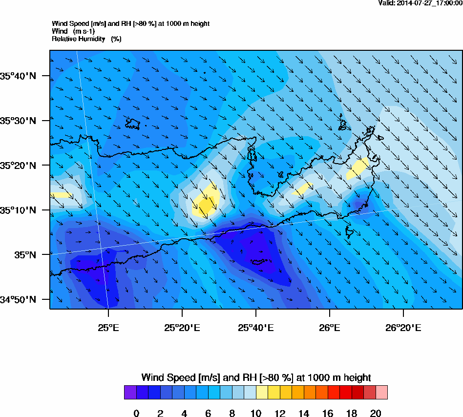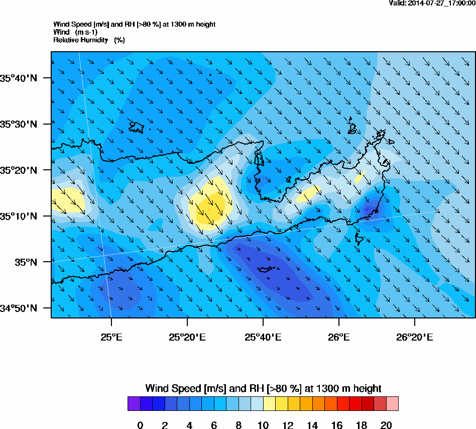Graph 3: arw073.png - Wind Speed [m/s] and RH [>80%] at 1000 m height
