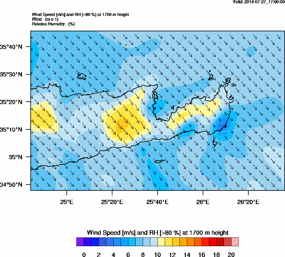 Graph 5: arw075.png - Wind Speed [m/s] and RH [>80%] at 1700 m height