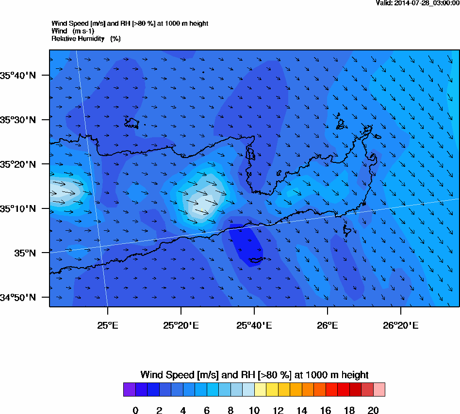 Graph 3: arw003.png - Wind Speed [m/s] and RH [>80%] at 1000 m height