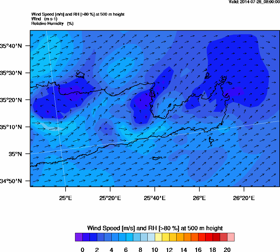 Graph 2: arw027.png - Wind Speed [m/s] and RH [>80%] at 500 m height