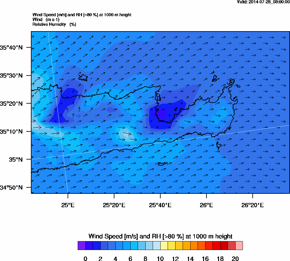 Graph 3: arw028.png - Wind Speed [m/s] and RH [>80%] at 1000 m height