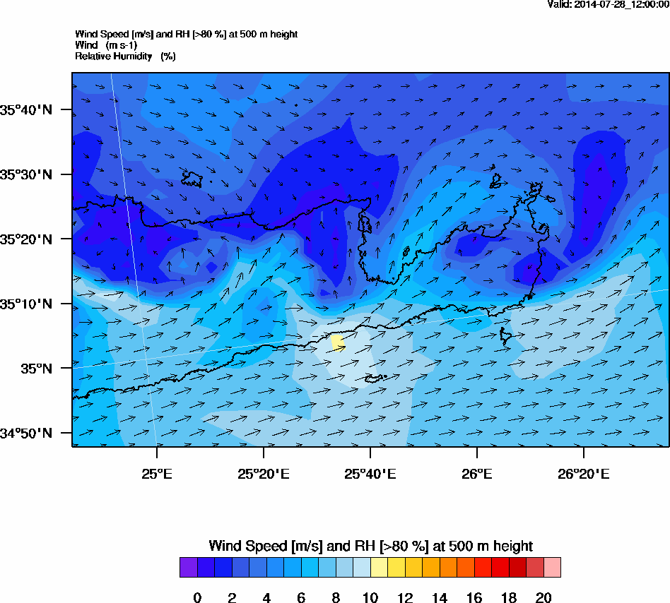 Graph 2: arw047.png - Wind Speed [m/s] and RH [>80%] at 500 m height