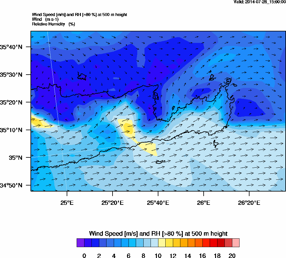 Graph 2: arw062.png - Wind Speed [m/s] and RH [>80%] at 500 m height