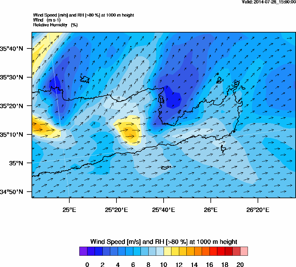 Graph 3: arw063.png - Wind Speed [m/s] and RH [>80%] at 1000 m height
