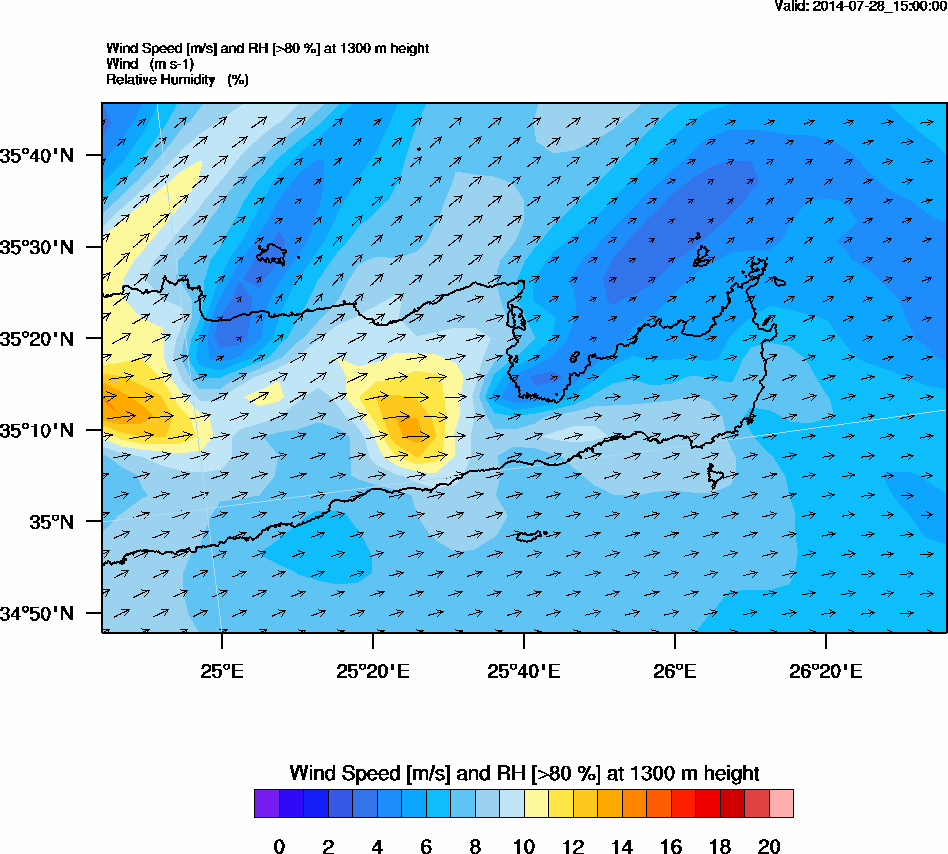Graph 4: arw064.png - Wind Speed [m/s] and RH [>80%] at 1300 m height