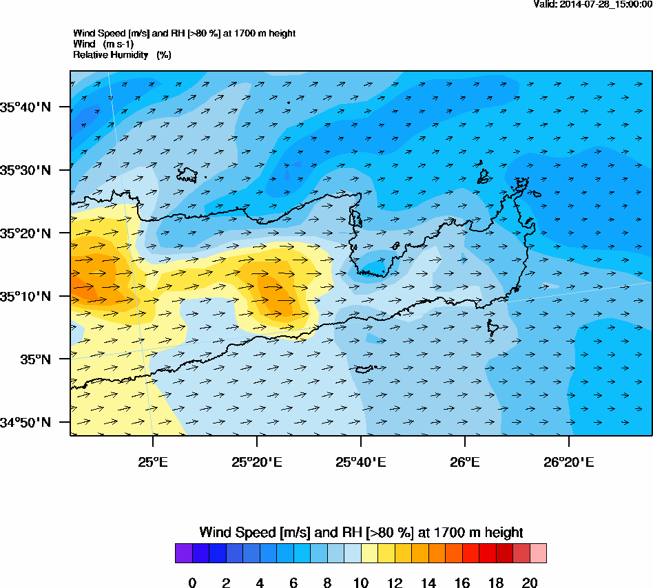 Graph 5: arw065.png - Wind Speed [m/s] and RH [>80%] at 1700 m height