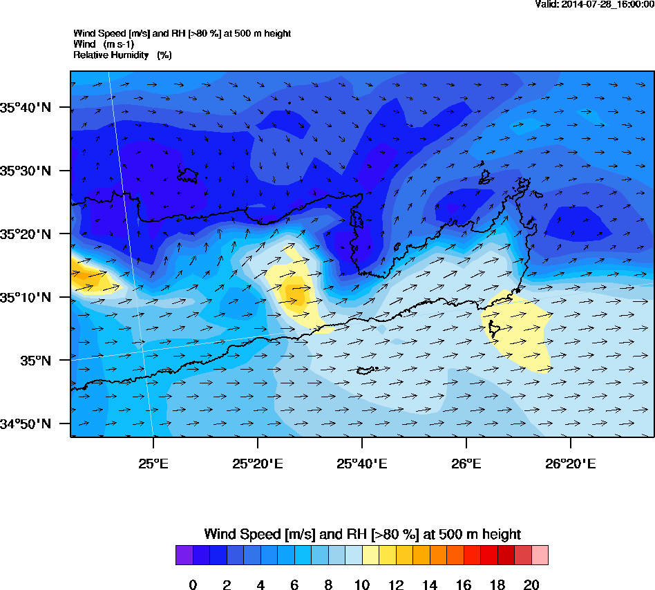 Graph 2: arw067.png - Wind Speed [m/s] and RH [>80%] at 500 m height
