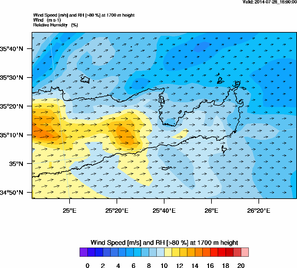 Graph 5: arw070.png - Wind Speed [m/s] and RH [>80%] at 1700 m height