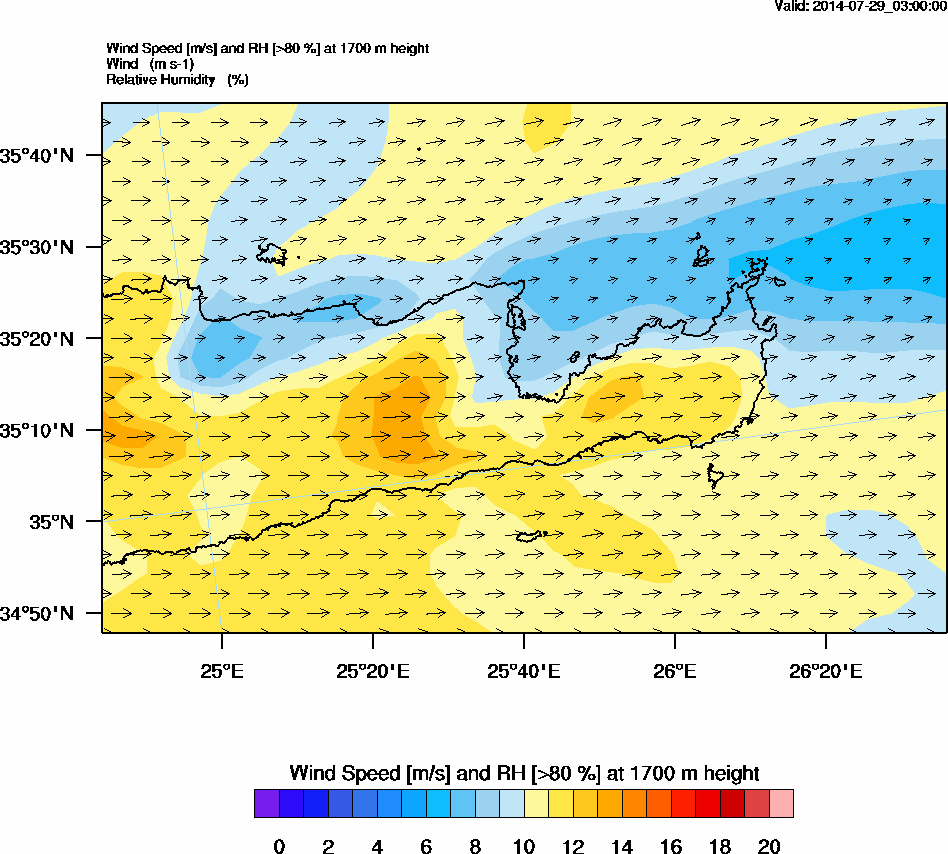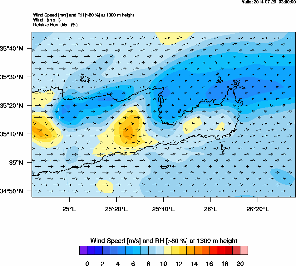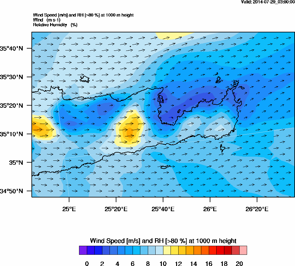 Graph 3: arw003.png - Wind Speed [m/s] and RH [>80%] at 1000 m height