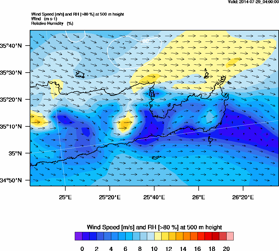 Graph 2: arw007.png - Wind Speed [m/s] and RH [>80%] at 500 m height