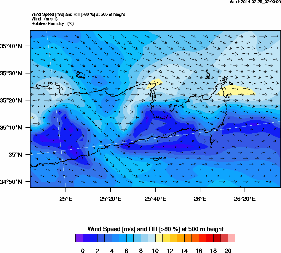 Graph 2: arw022.png - Wind Speed [m/s] and RH [>80%] at 500 m height