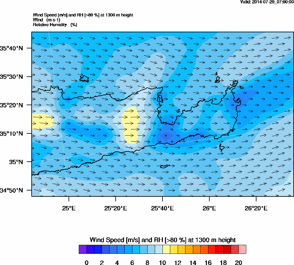 Graph 4: arw024.png - Wind Speed [m/s] and RH [>80%] at 1300 m height