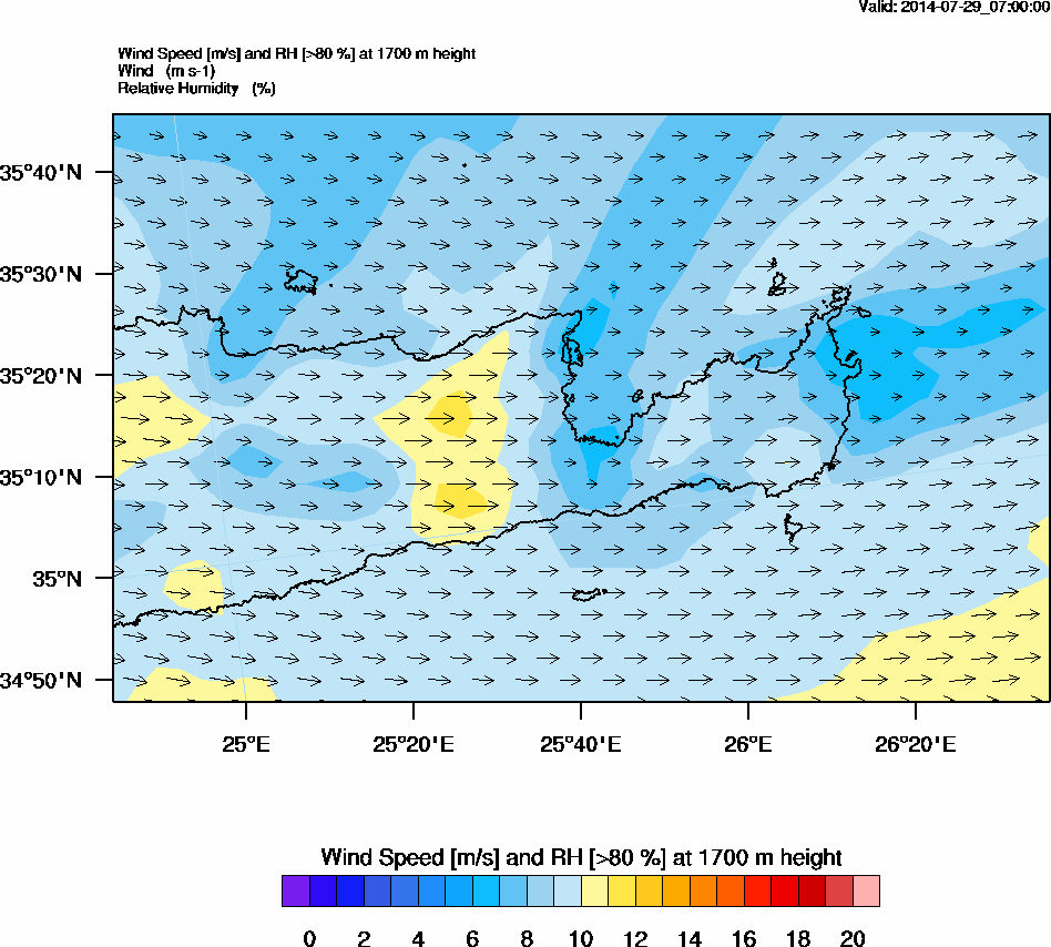 Graph 5: arw025.png - Wind Speed [m/s] and RH [>80%] at 1700 m height