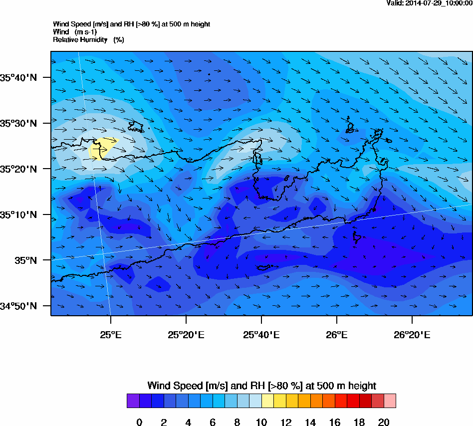 Graph 2: arw037.png - Wind Speed [m/s] and RH [>80%] at 500 m height