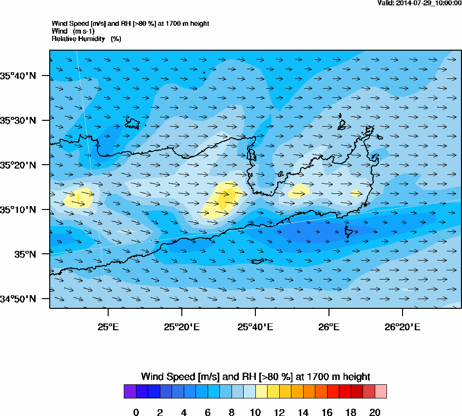 Graph 5: arw040.png - Wind Speed [m/s] and RH [>80%] at 1700 m height
