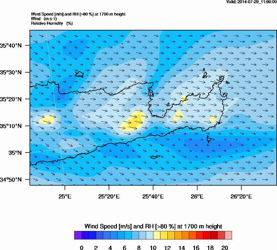 Graph 5: arw045.png - Wind Speed [m/s] and RH [>80%] at 1700 m height