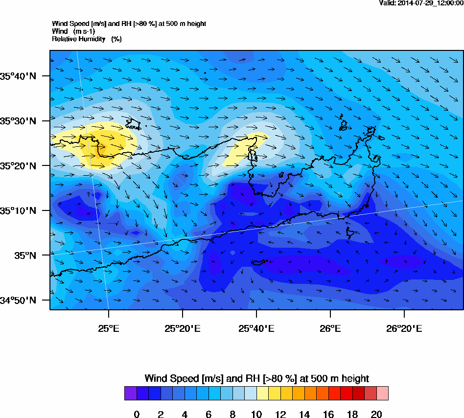 Graph 2: arw047.png - Wind Speed [m/s] and RH [>80%] at 500 m height