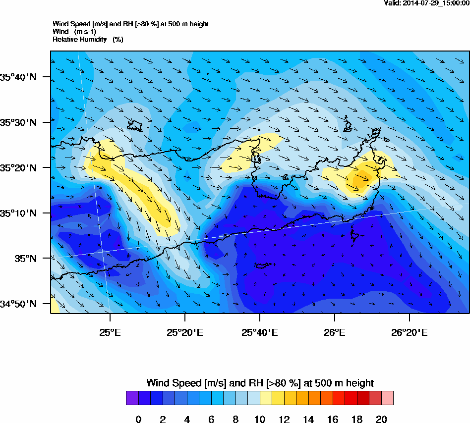 Graph 2: arw062.png - Wind Speed [m/s] and RH [>80%] at 500 m height
