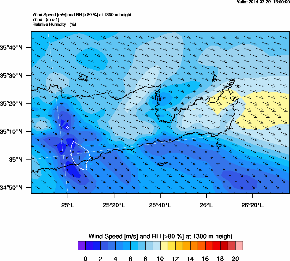 Graph 4: arw064.png - Wind Speed [m/s] and RH [>80%] at 1300 m height