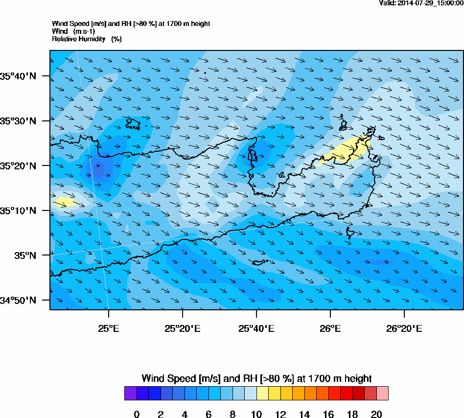 Graph 5: arw065.png - Wind Speed [m/s] and RH [>80%] at 1700 m height