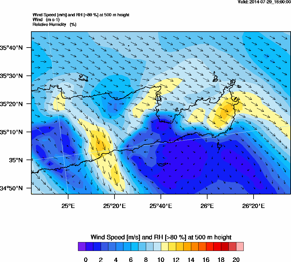Graph 2: arw067.png - Wind Speed [m/s] and RH [>80%] at 500 m height