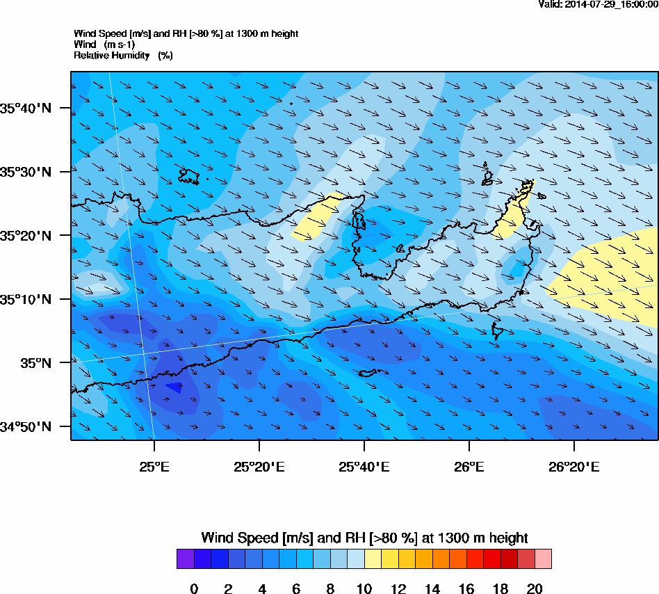 Graph 4: arw069.png - Wind Speed [m/s] and RH [>80%] at 1300 m height