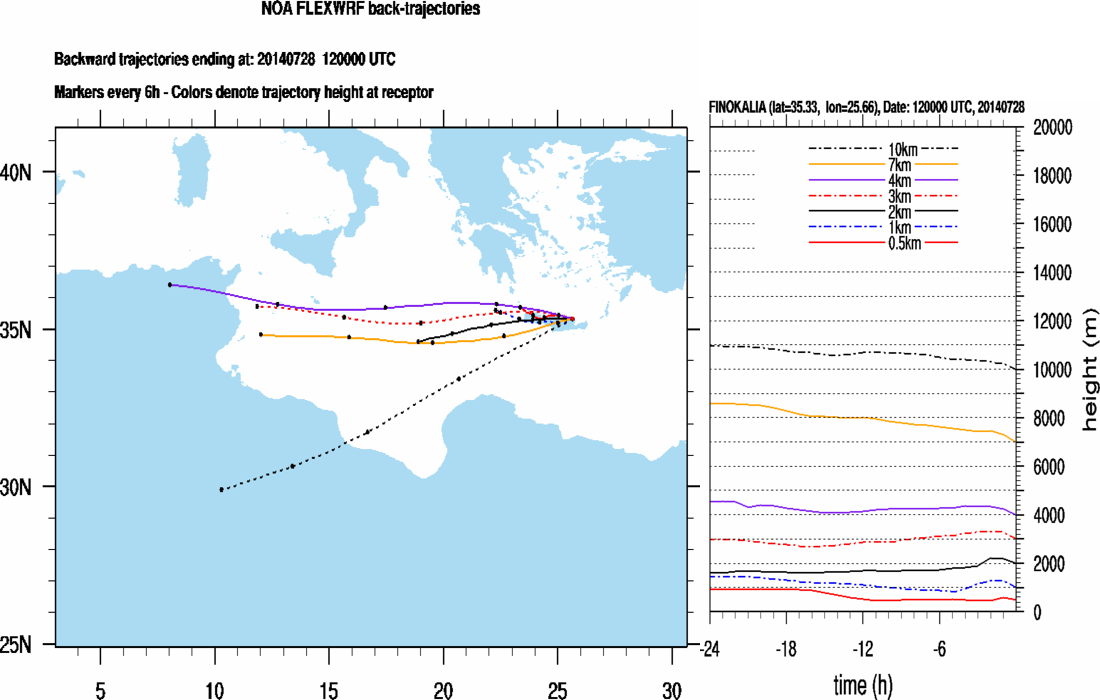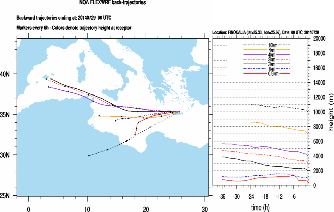 Graph 2: Backtrajectories forecast for Finokalia (+ 36 h)