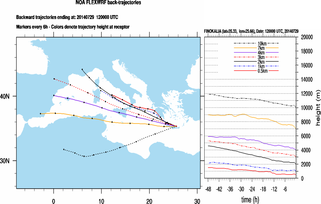 Graph 3: Backtrajectories forecast for Finokalia (+ 48 h)